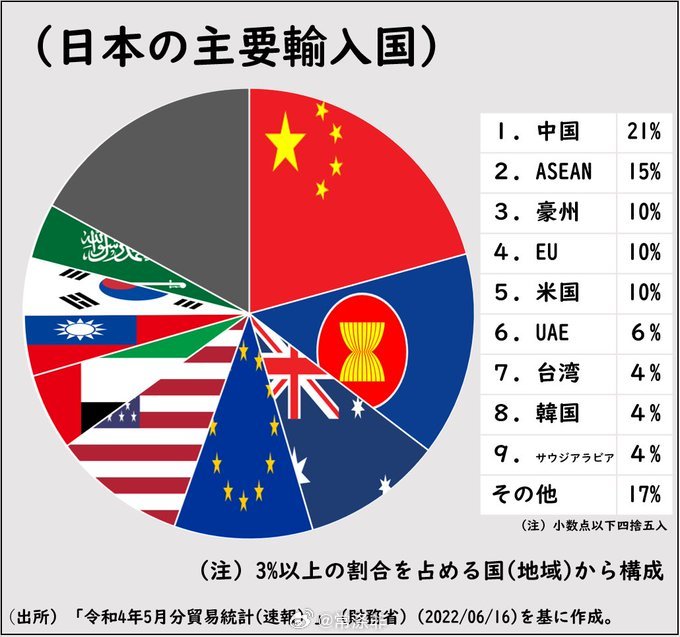 【】中国手里的牌根据2024年的数据:日本对华出口占日本出口总额的17.6%,占GDP的3.6%;中国对日出口占中国出口总额的3.6%,占GDP的0.81%。日本对中国的稀土,化工及药品原料和汽车零部件供应有严重依赖,中国不从日本进口,几乎不会对经济和制造业有任何影响。如果中国启动经济制裁直至断绝中日贸易,谁会比较痛?