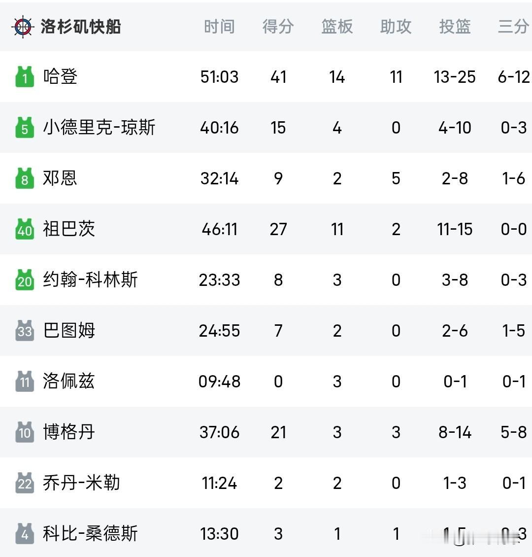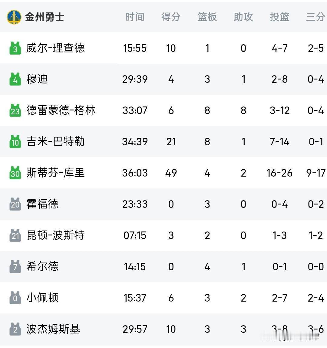 NBA积分榜丨库里49分勇士2连胜排名西部第八,哈登41分14板11助快船结束6连败。 快船133-127独行侠,西部两支难兄难弟之间的较量,这两队配置都很高,快船半场小比分领先,独行侠第四节追平比分,两队通过双加时才分出胜负,哈登出战51分钟得到41分14篮板11助攻,其中三分球12投6中。 勇士109-108马刺,文班亚马带领马刺成为西部强队,马刺队末节一度领先10分,库里回到场上开始追分,比赛最后时刻库里罚球命中勇士反超一分,比赛还剩6.4秒马刺没能投中绝杀球,勇士一分险胜。库里三分球17投9中砍下49分,文班亚马26分12板。