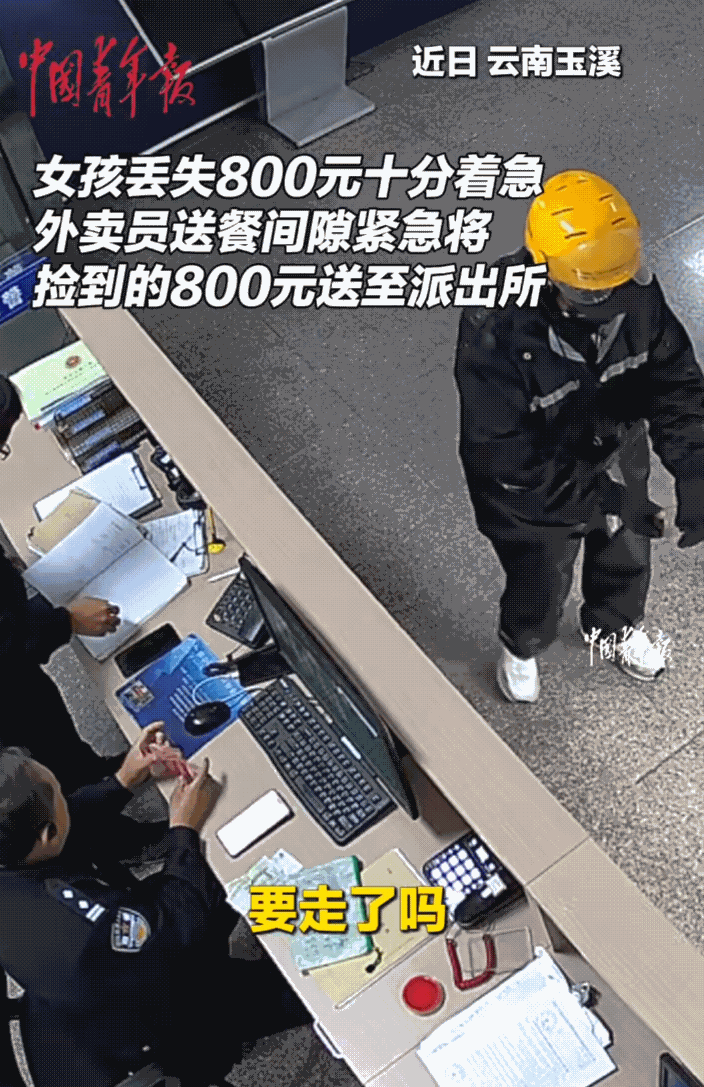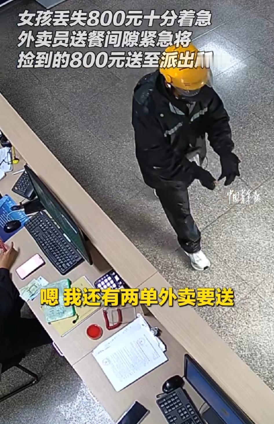 “正能量!”云南玉溪,一女孩丢失800元,外卖员送餐空隙将钱送到派出所 。 女孩报警称自己的800元钱丢了 ,接警后不久,一名外卖员拿着一个袋子来到派出所,这正是女孩丢的钱。由于外卖员手里还有单子要送,便匆匆离开了。 女孩来到派出所,通过电话向外卖员表达了感谢。也给民警们深深的鞠躬感谢。 网友热议,800元在大部分人眼里不多,但在小女孩那里可能是她仅有的生活费,好人一生平安。 他人的疏忽,却成了拾金不昧的见证,传递着无比的真诚与善良。 女孩的钱丢了,她一定很着急,好在有外卖员的拾金不昧。捡到了女孩的钱 。外卖员善良真诚,打动了大家 。是传播正能量的好榜样。 晒图笔记大赛 (信息来源:中国青年报)