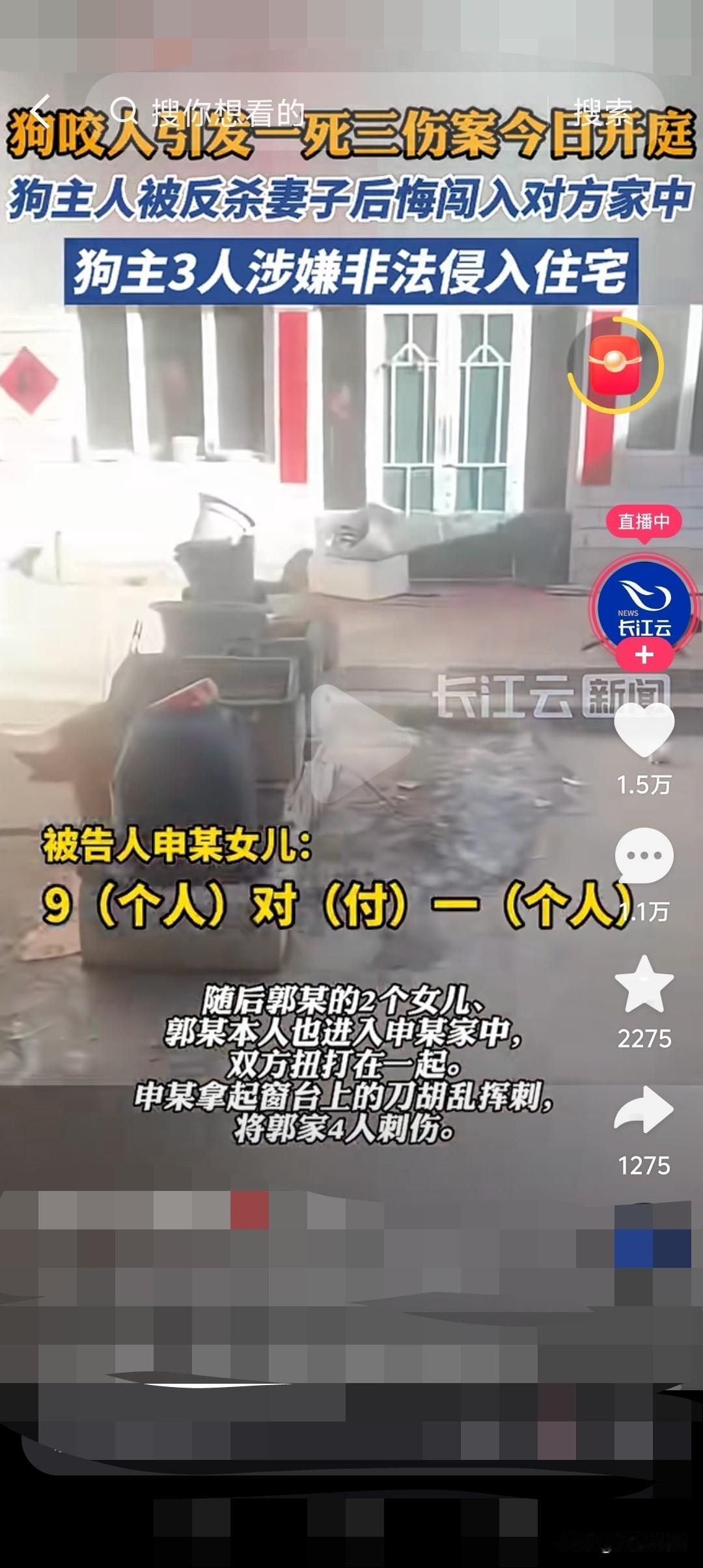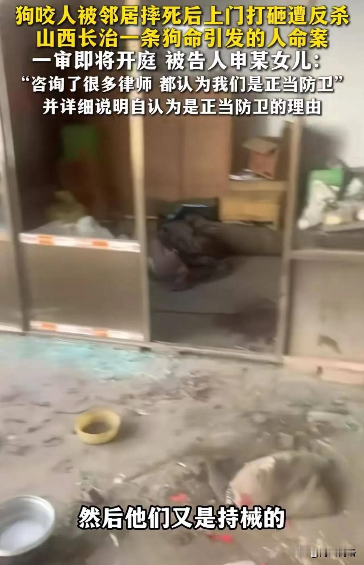 一条狗的命换来了一条人的命?山西长治血案开庭,死者妻子怒骂法官,我老公被刺9刀,怎么他反成了正当防卫? 在山西长治,因为自己家的一只狗被打死了,然后想上门讨一个说法,结果演变成了一个命案。 一人死亡,凶手申某被控故意伤害罪,结果却以正当防卫的理由来辩护! 死者的妻子张晓磊在法庭上哭诉,我们只是砸了几块玻璃,我该赔就赔,凭什么要把我老公刺死?这分明就是故意杀人。 这个到底是正当防卫,还是防卫过当?死者一方的行为到底构不构成非法侵入住宅加上暴力威胁? 被告人拿刀连刺了9刀导致人死亡,是否又超出必要限度? 原告一方的律师强烈的质疑正当防卫。 人数与武器的对比太悬殊,但这不是暴力,一起去的有9个人,但是只有3个人进去了房间里面,而且全过程里面,就只有一个人拿着铁锹,也没有发生身体上的动手。 死者的行为只不过是为了理论而已。 被告人描述,看到自己的女儿受到了侮辱,而且对方一上来说话就难听,实在是忍不住了,才挥了对方一拳,对方的其他几个人好像看到了我动手,马上就拿着铁锹,和其他棍子冲了上来,自己当时不知道该怎么办,下意识的拿着什么就是什么。 自己本来就是杀猪匠,所以才能拿出来剔骨刀,先重伤了死者的妹夫,因为已经动手了,当时理智上已经不清楚自己要干什么了,就想着还手还手,然后死者又冲了上来,自己只能出于自身的动作,才导致了这样的不好现象。 原告律师,致命的攻击用了10秒以上,而且是一直在连续的攻击,明显已经过度了,而且分别刺中了腋下、左胸、右腹、后背等这些的要害部位,这已经不是防卫了,而是在报复性击打! 我的理解,死者虽有过错(砸玻璃),但是远远没有达到危害生命的程度,不构成正当防卫前提。 被告人申某自己说,当时对方已经冲了过来,现场又一片黑暗再加上已经混乱了,自己只能拿到什么就是什么,根本不知道拿的是刀,自己听到有人倒地流血,所有人都停了下来,我才看清手里拿着的是刀。 女儿作证,我们正在吃饭,一下子,就听到了玻璃碎的声音和砸门的声音,然后就看到几个人冲了进来,上来就骂你们家的命没我狗的命值钱,今天要把你们弄死,上来就打我的爸爸,头都被打出血了,我当时已经非常的害怕了。 辩护的律师李圣主张,这完全属于正当防卫,应判无罪! 网友评论来了, 九个人带家伙冲进我家,我还不能拼命?这是在逼人坐以待毙吗? 讲理带铁锹?去谈赔偿还砸门?这不是讲理,是恐吓! 再大的委屈,也不能用暴力去讨说法吧 这件狗命换人命的悲剧,不只是一个人的错,而是对法治意识的一次沉重拷问。 如果是你家被9人围攻砸门,你会怎么办?