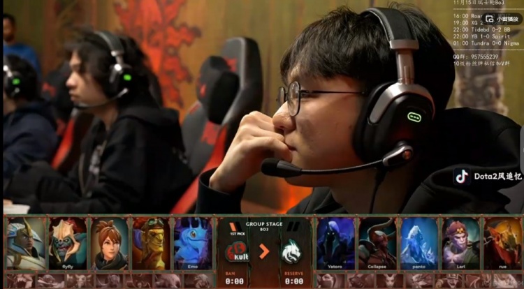 夜魇Spirit:rue赏金猎人、Larl齐天大圣、panto冰魂、Collapse半人马、Yatoro亚巴顿