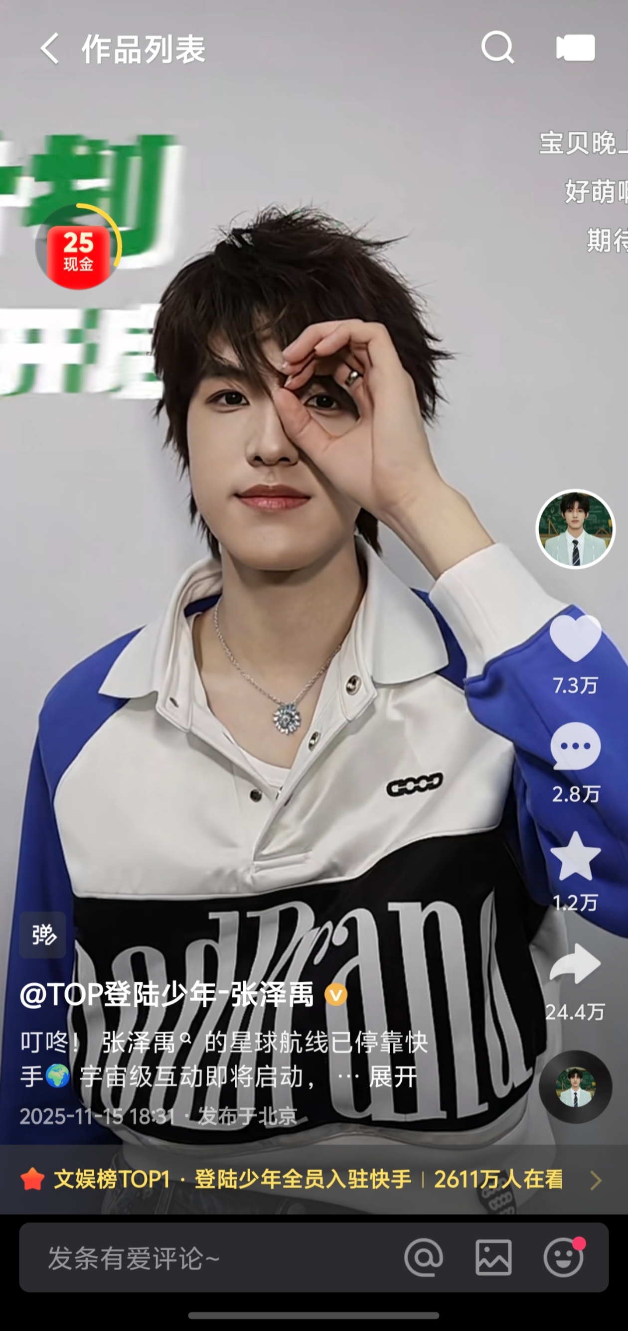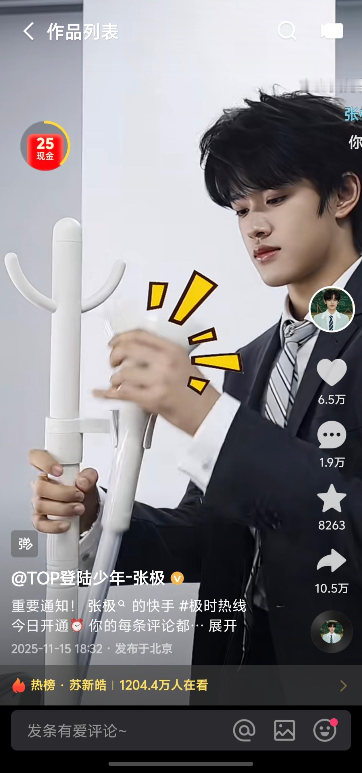 TOP快手发布4小时数据苏新皓 > 朱志鑫 > 左航 > 张泽禹 > 张极