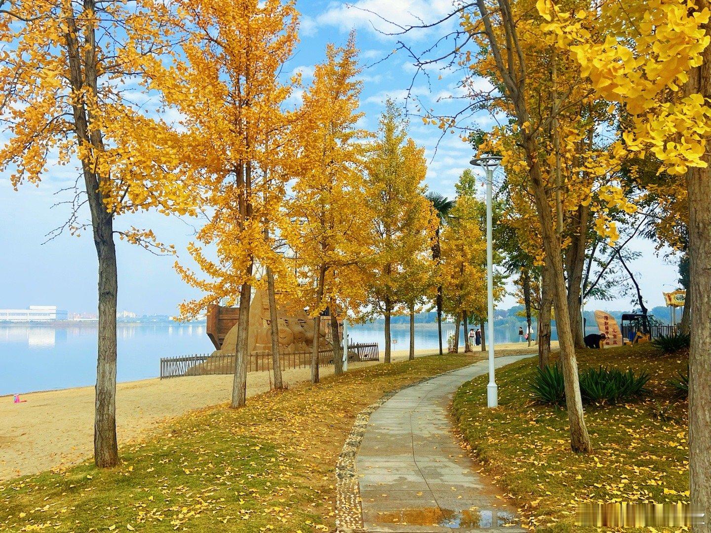 【阳光沙滩:沙雕艺术与亲子乐园的完美融合】 初遇漳河:秋色浸染的“湖北千岛湖”深秋的荆门漳河水库, 褪去了夏日的喧嚣,披上一层金黄与橙红交织的秋装。作为华中地区最大的人工湖泊,这里水域面积达104平方公里,分布着36座岛屿与164个半岛,被游客誉为“湖北千岛湖”。清晨的阳光洒在湖面,碧波荡漾,远处岛屿星罗棋布,空气中弥漫着柑橘的清香——库区10万亩漳河蜜柑正值丰收季,金灿灿的果实挂满枝头,为这幅山水画卷添了几分烟火气。 从漳河镇主入口驱车10分钟,便抵达核心景点之一的阳光沙滩。这片全国最大的湖泊沙滩浴场,沙质细腻如粉,赤脚踩上仿佛踏入热带海滨。秋日的沙滩少了夏日的拥挤,却多了几分静谧的浪漫: 沙雕艺术节:每年秋季,这里会举办沙雕艺术节,巨型沙雕作品以漳河文化、航空主题为灵感,栩栩如生。细腻的沙粒在阳光下泛着金光,吸引游客驻足拍照。 亲子互动区:沙滩上设有无动力乐园,孩子们可以挖沙筑堡、体验沙滩卡丁车,或是在亲水平台与浪花嬉戏。家长则可在无界酒吧点一杯本地柑橘汁,静享湖光山色。 实用贴士:沙滩门票20元/人,开放时间8:30-17:30;建议携带防晒霜与遮阳帽,秋季紫外线仍较强。漳河水库交通:自驾:从荆门市区沿S438省道行驶40分钟即达。公交:荆门汽车南站至“漳河镇”班车(6:30-17:30,每小时一班,票价12元)。门票:阳光沙滩20元/人,湖心岛70元/人,套票(含游船)140元/人。住宿:高端选择:精品民宿(独立卫浴、空调,约400元/晚)。自然体验:双喜半岛露营基地(提供帐篷与烧烤设备,约150元/人)。最佳季节:10-11月,秋高气爽,柑橘丰收,游客较少。