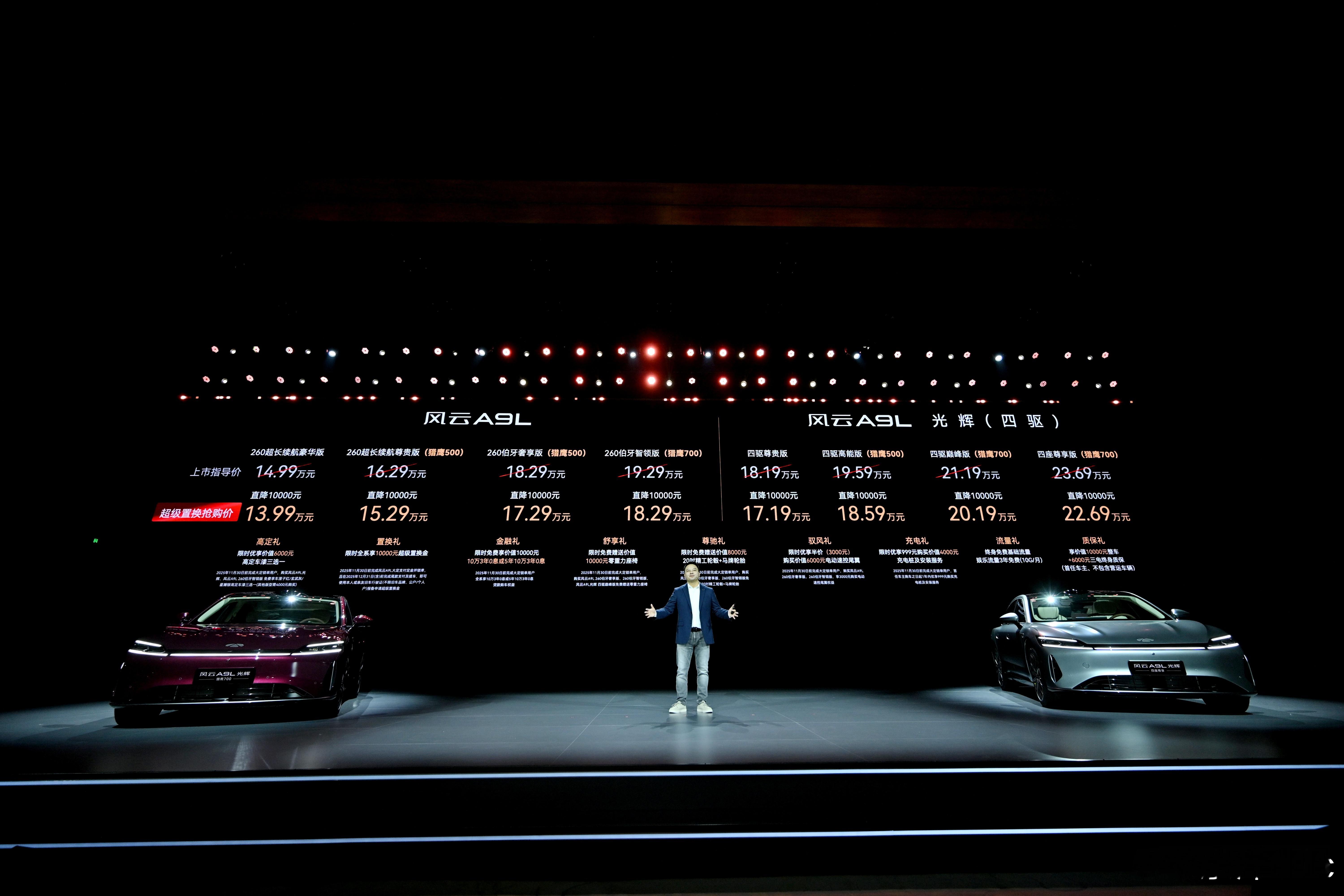 风云A9L 光辉来了,17.19 万元起,四个版本,四驱尊贵版售价 17.19 万、 四驱高能版(猎鹰 500 ) 售价 18.59 万、 四驱 巅峰版(猎鹰 700 ) 售价 20.19 万、 四驱尊享版(猎鹰 700 ) 售价 22.69万