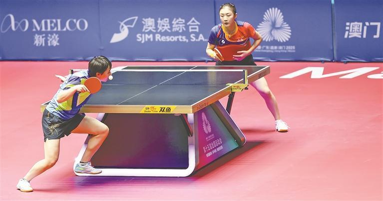 本报15日讯(记者杨镭)15日晚在澳门银河综艺馆进行的十五运会乒乓球女单半决赛中,卫冕冠军、黑龙江名将王曼昱以4比0横扫两届奥运会女单冠军陈梦,晋级决赛。16日晚,现世界排名第二的王曼昱将与现世界排名第一的孙颖莎上演乒坛巅峰对决。