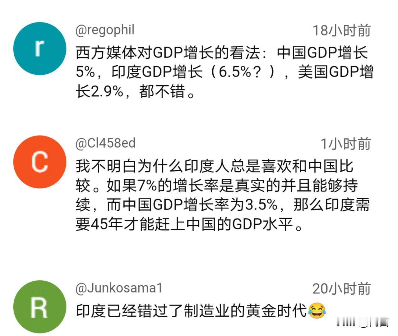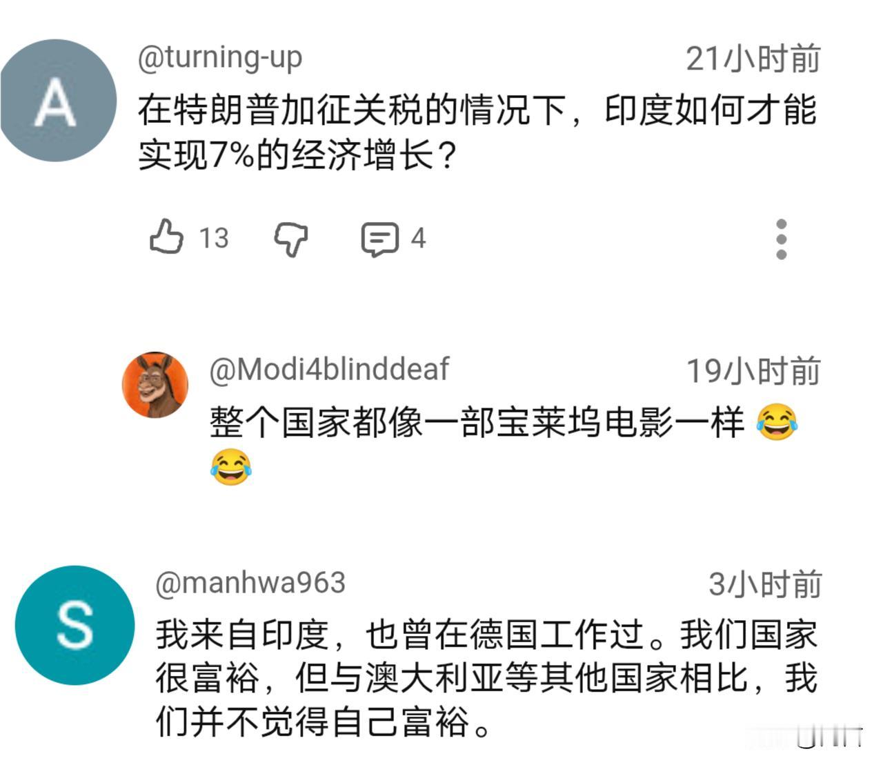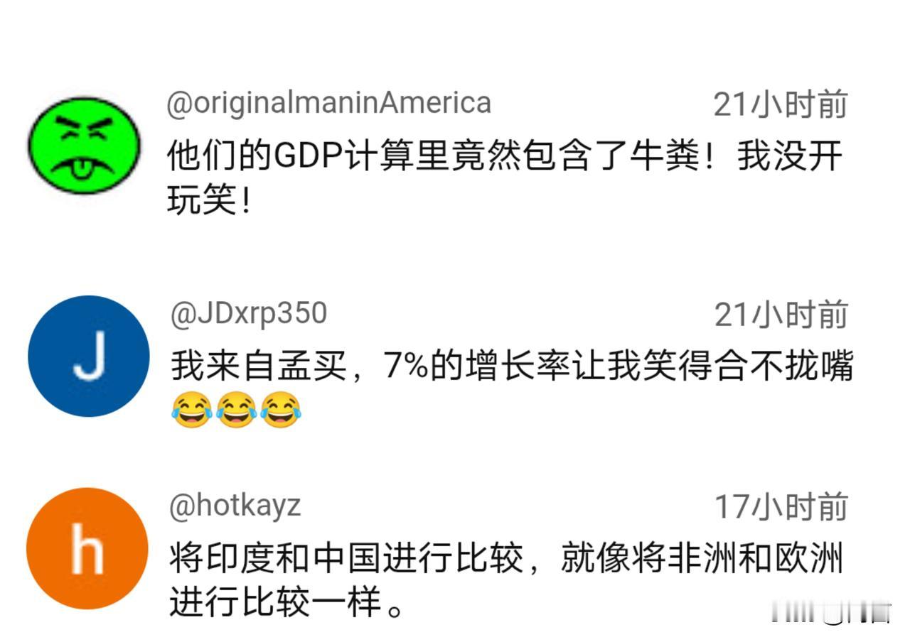 经济增长率超出预期!印博主:追上中国为时不远。 据印媒11月15报道,印度第三季度的经济增长率达到了7.2%,高于此前预测的5.5%一6%。 消息传出,就有印博主对此进行了解读。他认为,尽管受到了关税等因素的影响,印度经济依然高速增长,展现出了其强国的经济实力和潜力,未来势头仍旧延续,用不了多久或可以追上中国。 闻讯后的国外网友,包括印网友在内都不淡定了,他们都不相信这位博主所言。能不能追上是另外一回事,就连7%的增长率同样受到了质疑,且还是来自印度网友。 当然,能在目前环境下实现7%以上的增长的确不容易,可未来仍面临诸多因素的影响,印度能否依旧延续高速增长的态势还不得而知,现在就说要追上我们还为时过早…