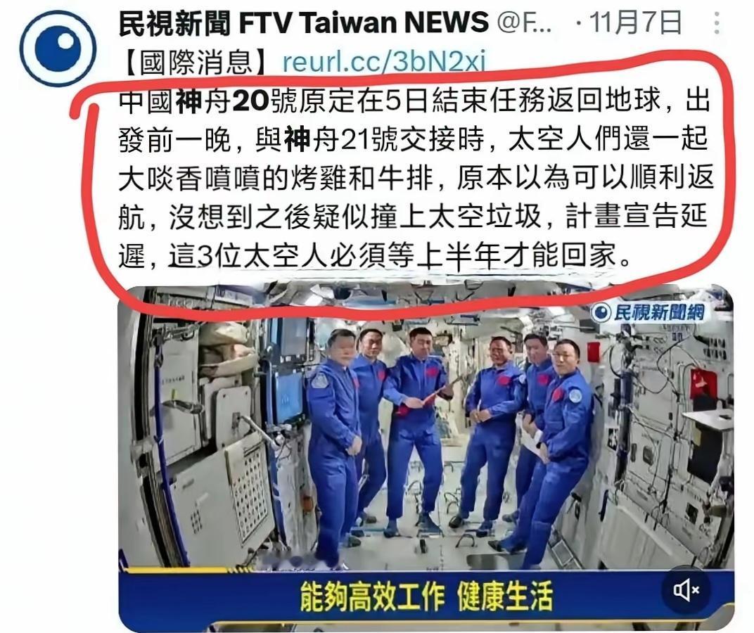 蛙蛙媒体已经成为智商洼地。前几天,神舟20由于遭到空间微小物体撞击,决定推迟飞船返回地球的时间。这家“民视新闻”表现特别兴奋,说中国航天员乘组,也要跟上次的美国航天员一样,在空间站至少等待半年时间才能回来。 结果不到一周时间,这家蛙蛙媒体就被打脸。中国直接启用神舟21,把航天员送回了地球。 蛙蛙不愧经常被称为蛙蛙,总是坐井观天,眼界狭隘。他们不知道,中国航天做每件事,都有好几个备份,好几个预案。空间站停着两艘飞船,地面还最少有一艘飞船待命,随时可以发射接人。 包括中国军工也是如此,相关技术参数都是有大量冗余。比如上次巴基斯坦空军击落印度的阵风战斗机,如果按照霹雳15参数,最多只能打180公里。于是印度战机躲到200公里以外,以为安全距离,肯定打不到,结果一股脑被击落好几架,直接懵逼。 凡是涉及到重大领域,中国研发和生产部门,总是超出原有设计标准,必须有冗余,有备份,有预案。这,才符合中国人稳扎稳打的民族性格。 这种民族性格体现到个人身上,也是如此。比如中国人就喜欢储蓄,以备不时之需。而西方人,月光族都是轻的,大多数人都是刷信用卡,提前消费。 所以,蛙蛙“民视新闻”这种媒体,之所以做出的预测被光速打脸,就是因为他们根本不了解中国人。想要提高智商,以免后代一代不如一代,唯一的办法,就是赶紧回归祖国怀抱! 神州20号飞船 太空争议