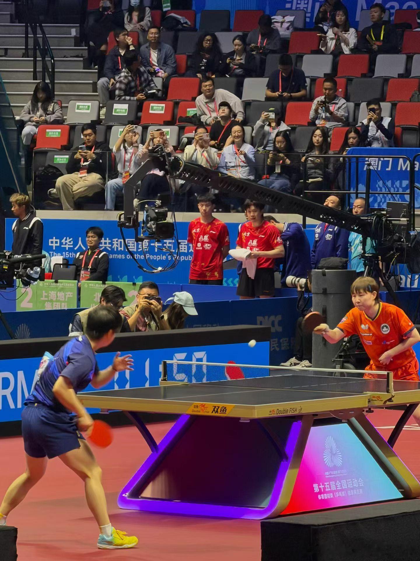 摄影师集体“偏爱”莎莎!莎莎真的太招人爱啦!她和刘斐比赛时,场外蹲了一排摄影师,