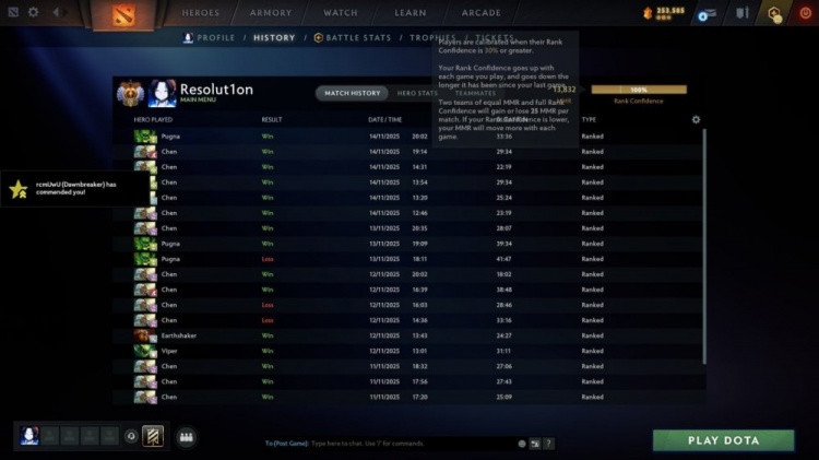 直播吧11月16日讯现年29岁的乌克兰DOTA2选手Resolut1on于15日展示了其13832的天梯分,并公开表示:找队打五号位,玩陈和帕格纳。