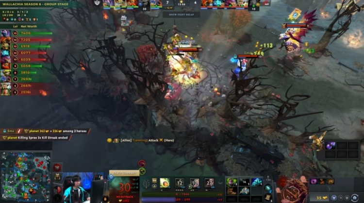 [30:08]野区团战,沙王进场开人,y换掉飞飞后被杀,zeal收掉玛尔斯,战车打出2换3。