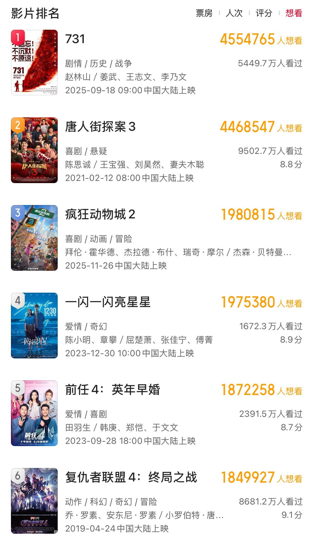 《疯狂动物城2》超过《复仇者联盟4》,成为猫眼史上想看人数最多的好莱坞电影。