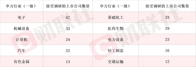 财联社11月16日讯(编辑宣林)据Choice数据统计,截至今日,沪深两市本周共350家上市公司接受机构调研。按行业划分,电子、基础化工和机械设备行业接受机构调研频度最高。此外,有色金属、交通运输等行业关注度有所提升。