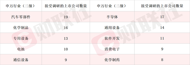 细分领域看,汽车零部件、半导体和化学制品板块位列机构关注度前三名。此外,电池、通信设备等行业机构关注度提升。