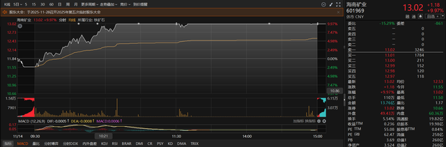 海南矿业周二公告,布谷尼锂矿已于今年一季度投入试生产,并在11月3日举行投产仪式。首批3万吨锂精矿产品已于10月14日从马里布谷尼项目起运,预计11月底将完成装船,由科特迪瓦圣佩德罗港口通过海运于明年年初运抵海南,为公司锂盐加工项目提供核心原材料。二级市场上,海南矿业周五盘中涨停,收盘涨9.97%。