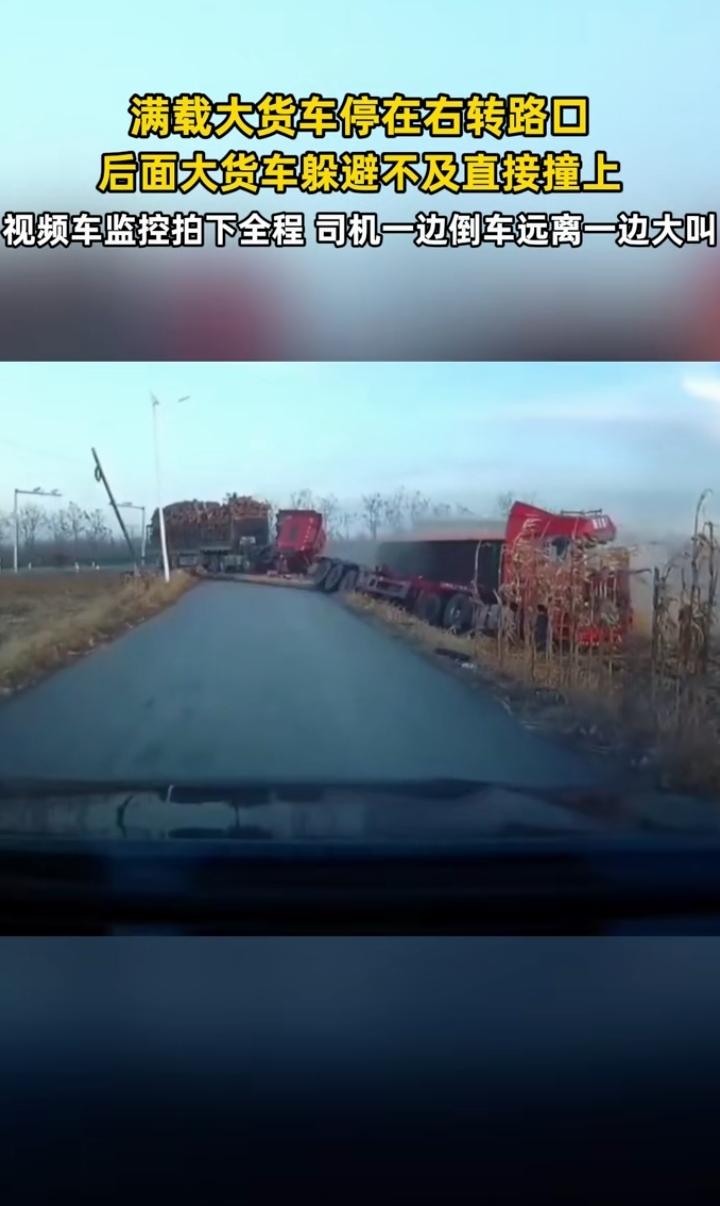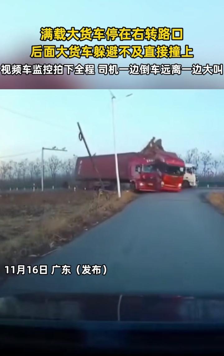 近日广东广州,一辆红色大货车停在右转路口,谁料,5分钟后方一辆大货车没反应过来,直接撞了上来,当场侧翻在地! 周围司机看到这一幕,更是一直尖叫并后退,赶紧避开!从视频监控看,红色货车路口停车应该是为了等视频车过去后,右转的,因为路窄,不好会车,后车因为速度快刹不住,才撞上去的!