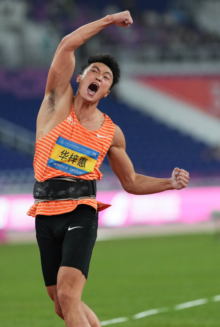 11月16日晚,杭州选手华梓惠以7855分获得了第十五届全运会男子十项全能金牌。