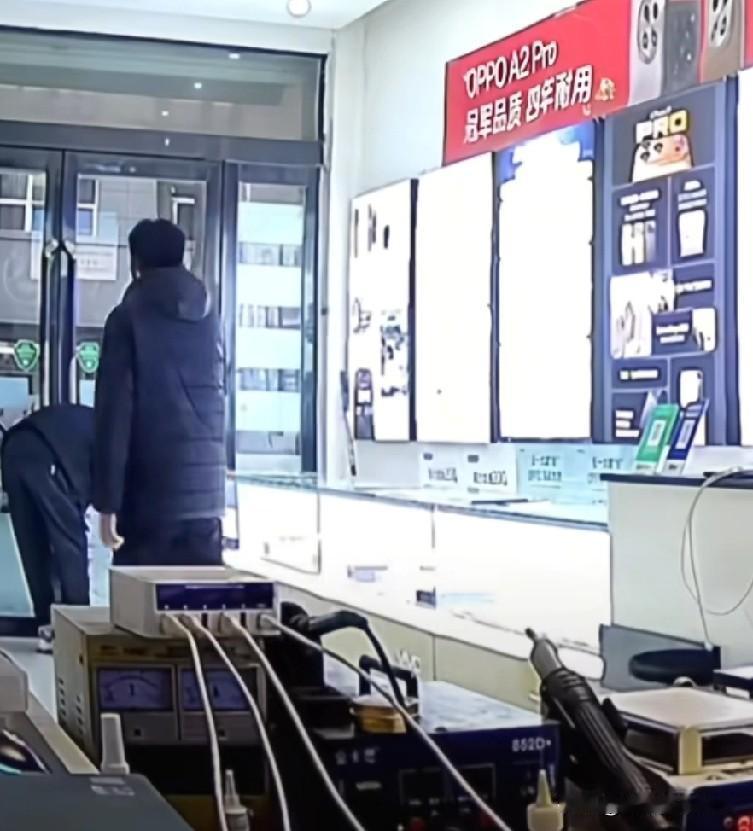 老板高明!两个小伙去店里看手机,趁老板给其中一个介绍手机的空,另一个小伙拿着手机