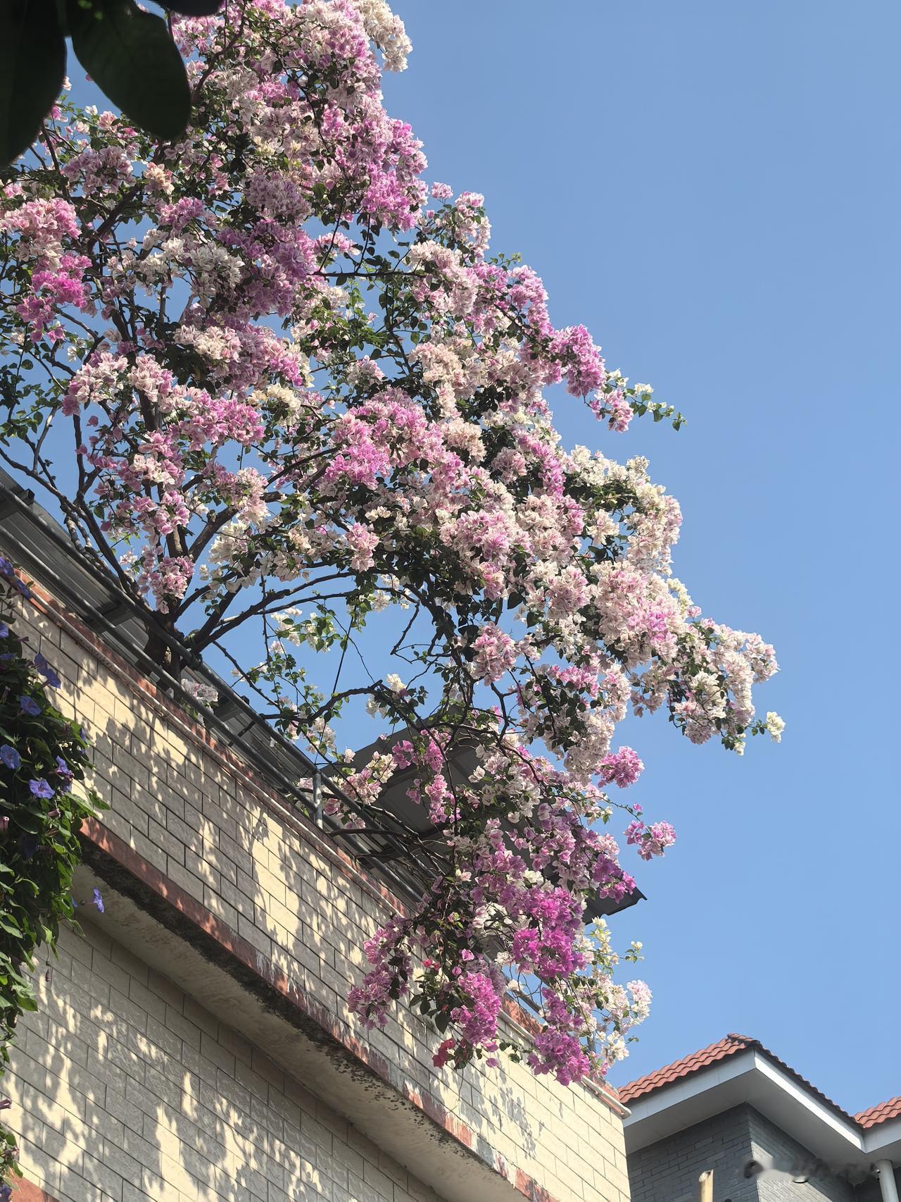 昨天顺德逢简之行,在蜿蜒小巷深处,抬头一眼,被天台上的三角梅瀑布惊艳。 衬着无垠的蓝天,伴着轻柔的微风,花朵更显灵动静美,仙气十足。 主人是一位约摸50岁的大哥,看到我咔嚓咔嚓的拍照,便走到门外热情相邀,踏入他的小院,才窥见全貌,约有十多个品种[玫瑰] 大哥自豪地介绍,这些繁花全是从一楼小苗开始,最长时间的,已有八年,一路攀援,直上楼顶[赞][赞][赞] 刚翻开照片回顾,那隐于巷弄的“空中花园”固然惊艳,但更动人的,是大哥那份慷慨与从容的生活态度。 三角梅盆栽花卉 三角梅花海 三角梅老庄 邂逅美好 三角梅 顺德 水乡 治愈 养花日常 这才是生活