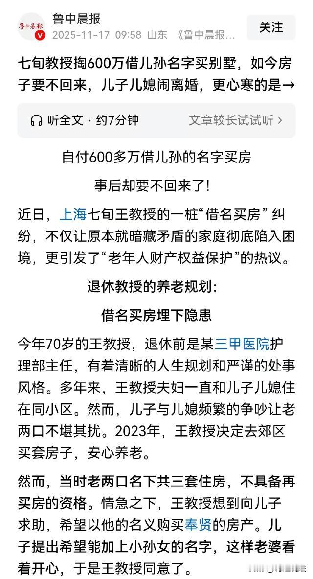 上海,老王想买一套别墅养老,因名下有三套住房不具备买房资格,因此将这套600万的别墅落户在儿子和孙女名下。不久儿媳和儿子闹离婚,儿媳称这套房子是老王赠予给儿子和孙女的,拒绝归还房子,老王的老伴也因此要和他离婚。 老王今年70岁了,原本应该是颐养天年的年纪,可他却陷入了旷日持久的家庭纠纷。 老王原本是一家三甲医院的主任,家里条件优渥,光老王和老伴名下就有三套房产。 老王的儿子结婚后,儿子儿媳一家和老王住在了同一个小区。 可一家人过于亲近就会生事端,儿子儿媳结婚时间久了,经常会发生争执,每次一吵架儿媳妇就会去找老王和老伴闹。 此时的老王和老伴已经是退休老人了,哪里经得起他们这么折腾?于是,二老一商量决定在郊区买套房,离他们远远的,好好颐养天年。 不久老王和老伴看中了郊区的一套别墅,可因为他们名下已经有了3套房产,不具备买房资格。 于是,老王就和儿子商量,借他的名额买下这套位于奉贤的别墅,等他卖了房有购房资格了,再把房子还给他。 儿子提出,妻子老是和他闹矛盾,只写他一个人的名字,妻子肯定会心里不舒服,会再和他闹,不如加上他小女儿的名字,这样妻子心里会高兴一些,老王没有多想同意了。 于是,老王顺利买了房,从看房到签合同,再到付钱和收房,以及后续的装修,全部都是老王和老伴张罗的,儿子儿媳从来没有过问。 2025年1月,老王和老伴终于搬进了养老别墅,可矛盾也接踵而来。 原来,在买下这套别墅后,老王就将名下的两套房子先后出售,他也重新获得了买房资格。 此时,别墅也可以办房产证了,老王就让儿子按照约定把别墅过户回他的名下。 儿子同意了,并和老王一起去公证处签订了一份《借名买房协议》,可在房屋过户时又遇到了麻烦。 原来,房子登记时,是登记在老王儿子和小孙女名下的,因为小孙女还没成年,房产交易中心要求监护人代替她签字,可儿媳妇称别墅是老王赠予儿子和孙女的,不同意签字。 借儿子的名买房,结果变成肉包子打狗,有去无回。老王无奈之下,只好起诉儿子、儿媳和小孙女,要求将别墅所有权变更到自己名下。 可一审庭审时,儿媳妇拿出了一份老王和大孙女的聊天记录,老王对大孙女说:别墅我和你奶奶住十几二十年后,再给你爸和你的妹妹。 儿媳妇称,这份聊天记录可以表明,老王已经赠予给了儿子和小孙女。 一审据此认定老王将别墅赠予了儿子和小孙女。 老王和老伴无法接受,老伴认为,别墅是她和老王的夫妻共同财产,一审没有追加她参与诉讼,直接认定别墅是老王的个人财产错误。 当时,老王的儿子儿媳正在闹离婚,一审判决后,老伴又气又怒,也要和老王离婚,一时之间,老王焦头烂额。 本案从法律角度应该如何分析? 1、一审认定房子为老王个人财产是否正确? 《民法典》第一千零六十二条规定,夫妻在婚姻关系存续期间所得的财产,一般归夫妻共同所有。 本案中,购买别墅的资金来源于老王和老伴在婚姻关系存续期间的积累,且购房行为发生在二人婚姻存续期间,该房产属于夫妻共同财产。 在没有特别约定的情况下,该别墅应认定为老王和老伴的夫妻共同财产,而非老王的个人财产。 一审未追加老王的老伴参与诉讼,直接将别墅认定为老王个人财产,违背了上述法律规定,损害了老王老伴的合法权益。 2、老王将房产赠予给儿子和孙女,赠与是否合法有效? 儿媳主张老王已将别墅赠予儿子和孙女,主要依据是老王和大孙女的聊天记录,其中老王表示“别墅我和你奶奶住十几二十年后,再给你爸和你的妹妹”。 根据《民法典》第六百五十七条规定,赠与合同是赠与人将自己的财产无偿给予受赠人,受赠人表示接受赠与的合同。 赠与合同的成立需要有明确的赠与意思表示以及受赠人的接受。 本案中,仅从聊天记录来看,老王的表述具有一定的模糊性,不能确凿地认定为是明确的赠与意思表示。 而且,没有证据表明儿子和孙女明确作出了接受赠与的意思表示。 退一步讲,即便老王有赠与的意思表示,该赠与行为也存在合法性问题。 如前文所述,别墅属于老王和老伴的夫妻共同财产。根据《民法典》第三百零一条规定,处分共有的不动产或者动产以及对共有的不动产或者动产作重大修缮、变更性质或者用途的,应当经占份额三分之二以上的按份共有人或者全体共同共有人同意,但是共有人之间另有约定的除外。 老王未经老伴同意,擅自对别墅进行所谓赠与,侵犯了老伴对夫妻共同财产的处分权,应认定为无效。 一审判决后,老王不服提起上诉,二审调解阶段,提出将房子50%份额过户给老王,另外50%归小孙女。 老王和老伴认为,根本没有证据证明,他们将房屋赠予给了儿子和孙女,但为了息事宁人,他们愿意将5%份额给小孙女,如果小孙女长大后知书达礼,他们会给她留下遗产继承份额。 可儿媳不同意,调解陷入僵局,目前,二审调解又陷入了僵局。