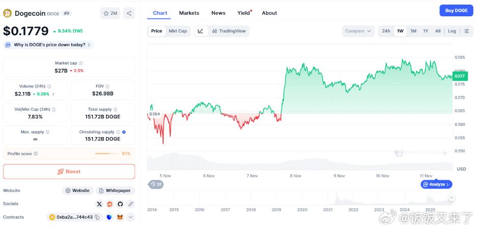 狗狗币最近又要“搞事情”了!价格一直卡在 0.185 美元附近,这个位置从 11