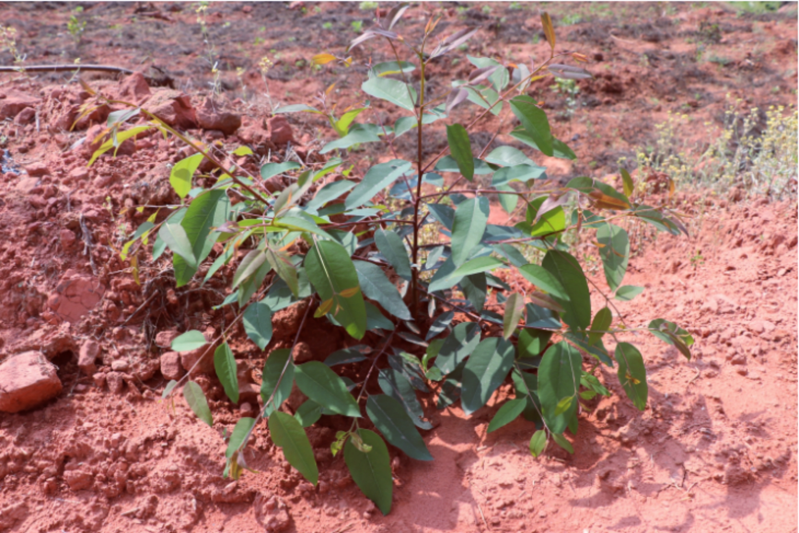 三、坚持“上不遮光、下不抢肥、采伐不压损”的布局原则,按行或列连续呈规律种植,不能影响油茶正常生长、挂果,采伐桉树时不压损油茶,桉树种植5年后可正常采伐。