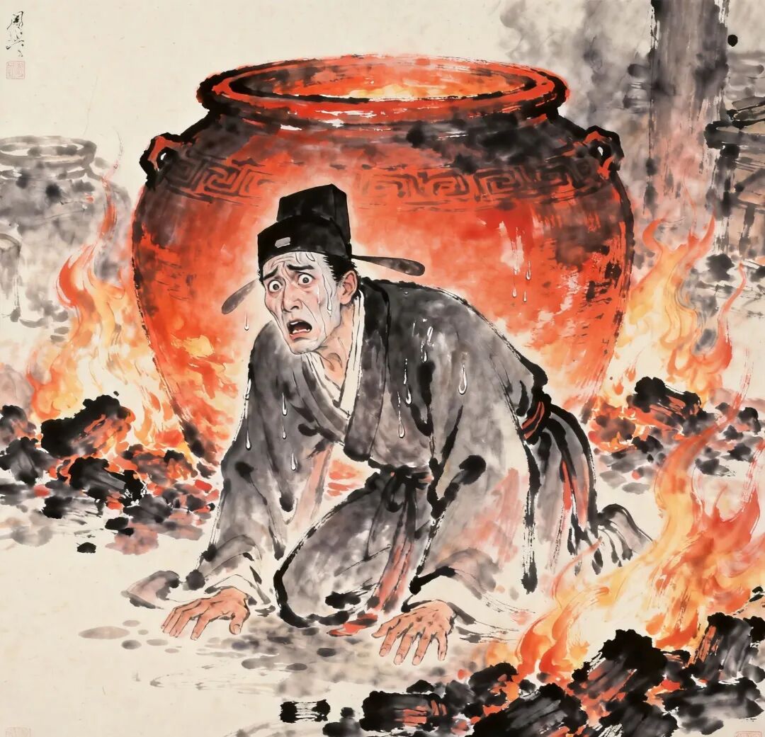 周兴与来俊臣同为武则天时期的酷吏,手段同样狠辣。他曾主持多个大案,每次办案都牵连甚广,官员们对他既怕又恨。后来有人告发他谋反,武则天命来俊臣审问他。来俊臣假意请教:“犯人不认罪怎么办?”周兴得意地说:“用大瓮烧红,把人放进去,他肯定招!”来俊臣当即让人抬来烧红的大瓮,说“请君入瓮”,周兴吓得立刻认罪,这一典故也流传至今。