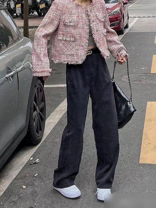 小香风那股子“贵气感”真不是吹的,粗花呢的肌理、正肩短款的版型,自带“精致到头发丝”的buff,但单穿小香风容易显“老派”——就像把妈妈的复古外套直接套身上,总像偷穿大人衣服。可配阔腿裤就不一样了!阔腿裤的“慵懒感”刚好把小香风的“端着”给揉开,比如软fufu的牛仔阔腿裤配硬挺的小香风外套,像把法式优雅和街头随性缝在了一起;垂坠感的西装阔腿裤配小香风,又把职场干练和轻奢感融成了一体——走在街上,既吸睛又不扎眼,路过的阿姨都会回头问“姑娘这衣服在哪买的?”