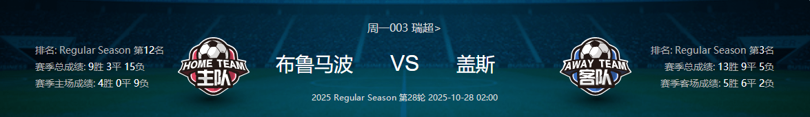 周一003瑞超布鲁马波卡纳VS哥德堡盖斯