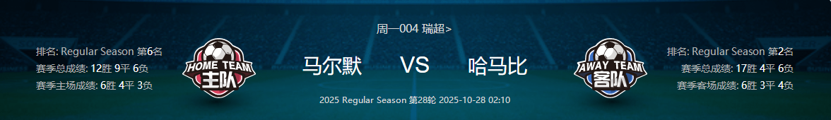 周一004瑞超马尔默VS哈马比