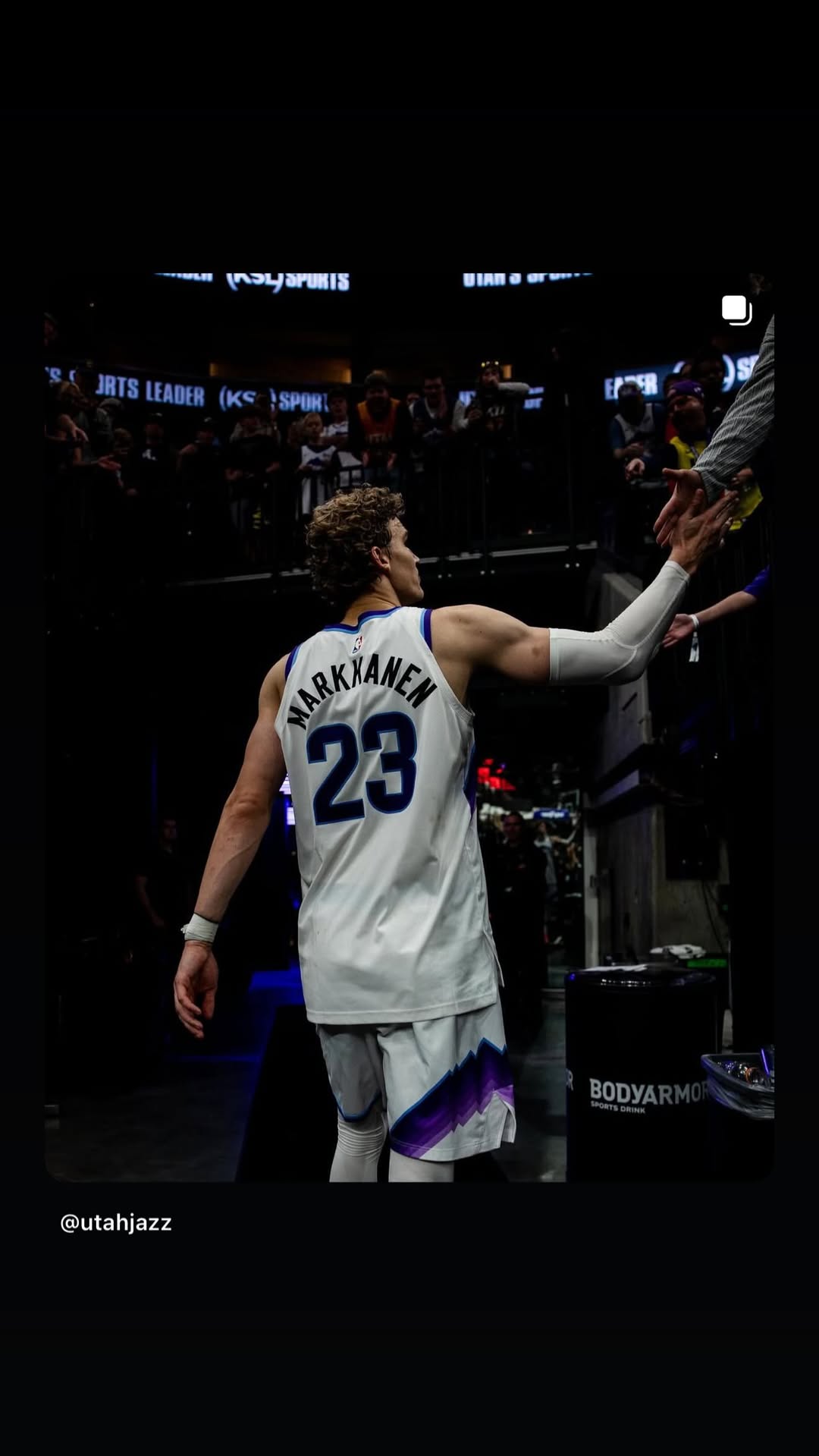 虎扑11月17日讯爵士球员劳里-马尔卡宁更新个人社媒,晒出赛后退场与球迷击掌合影。