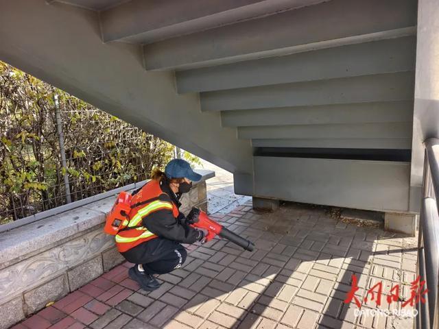 随着气温持续走低,道路扬尘、落叶堆积等问题给城市保洁带来不小挑战。为给市民营造干净整洁的出行环境,平城区环卫服务中心通过“人机结合”作业模式,用吹风机“吹净”城市的犄角旮旯,让城市在寒冬中依旧保持清爽面貌。