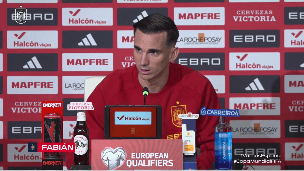 虎扑11月17日讯西班牙中场法比安-鲁伊斯出席对阵土耳其的世界杯预选赛赛前新闻发布会。