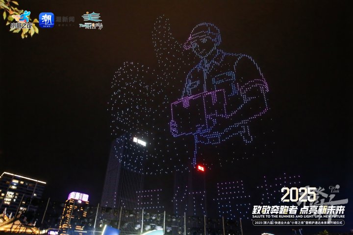 当晚,华策影视还宣布推进小哥题材的影视作品,让更多奔跑的身影在银幕上绽放光芒。活动最后,2000架无人机腾空而起,带来科技光影秀《一群人和一个城的故事》,以夜空为幕,绘出快递人与桐庐共成长的动人画卷。