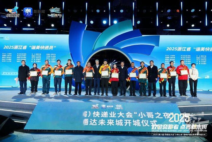 今晚,以“致敬奔跑者点亮新未来”为主题的2025(第六届)快递业大会“小哥之夜”暨桐庐通达未来城开城仪式在桐庐未来湖畔隆重举行。来自政府、行业协会、企业及快递从业人员代表齐聚一堂,共同见证快递行业的温情时刻与未来发展的崭新篇章。