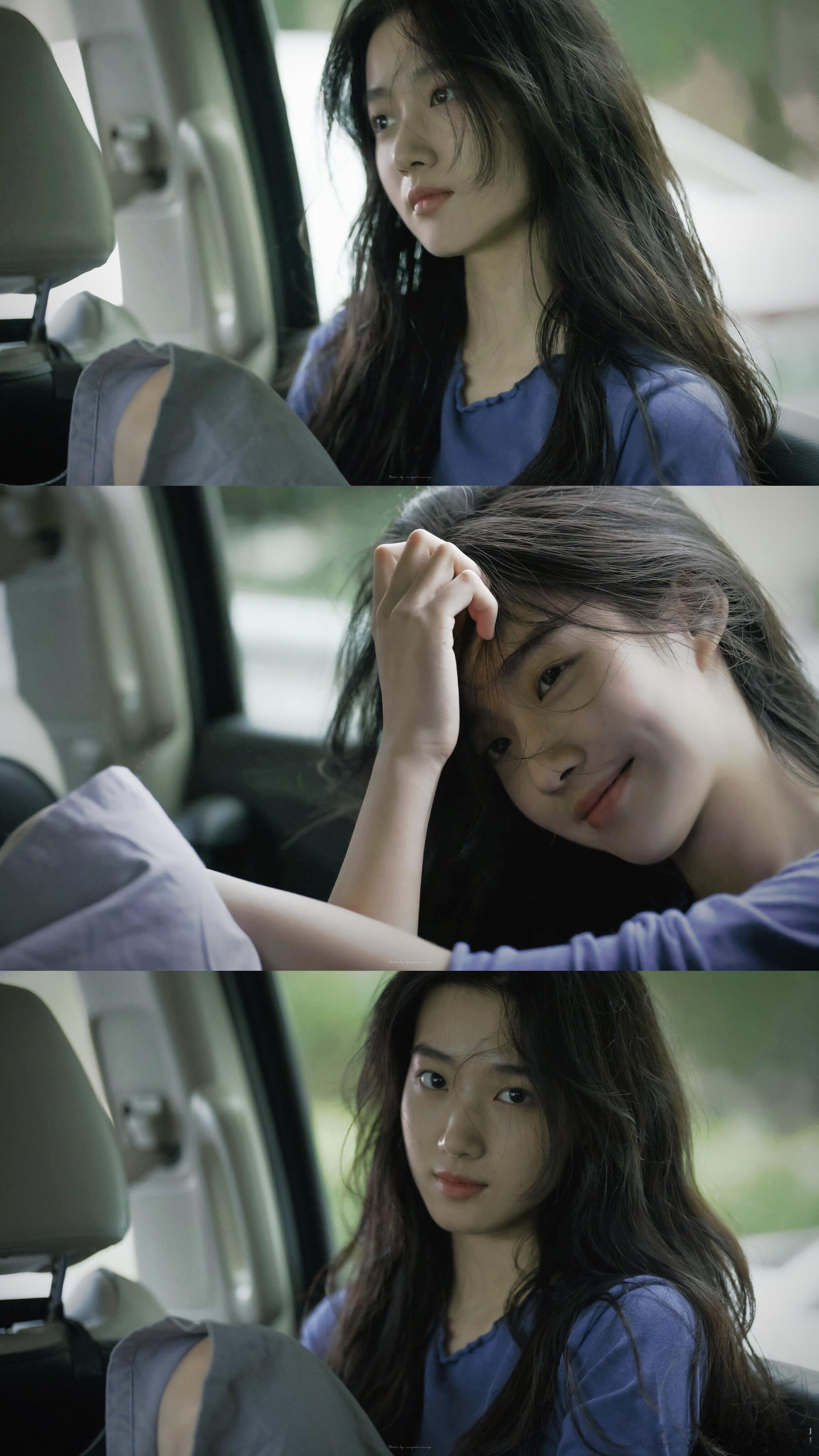 卢昱晓车里一坐,连风都跟着柔下来——碎发漫过眼尾是淡颜的松弛,抬眸时又带着点漫不