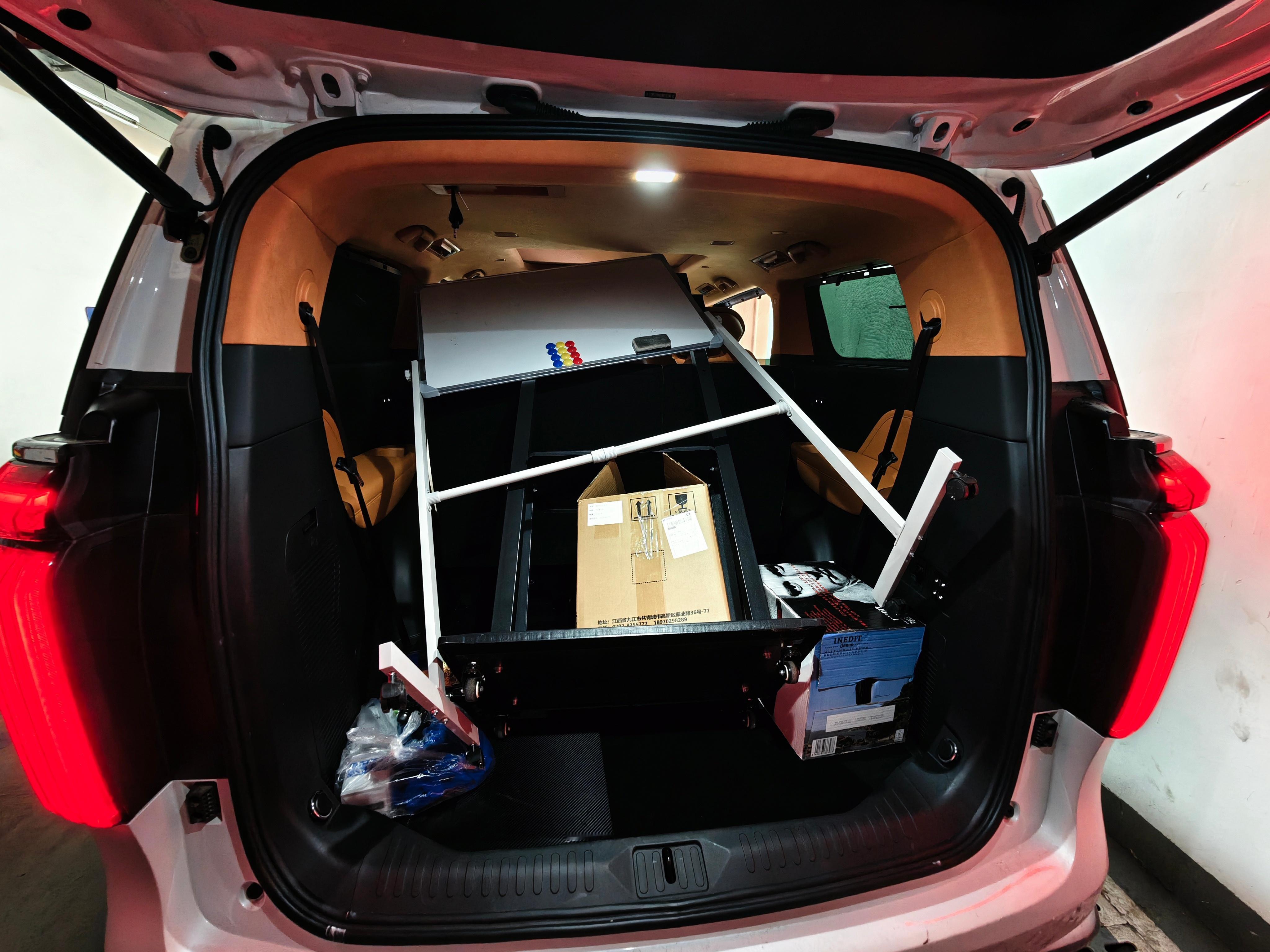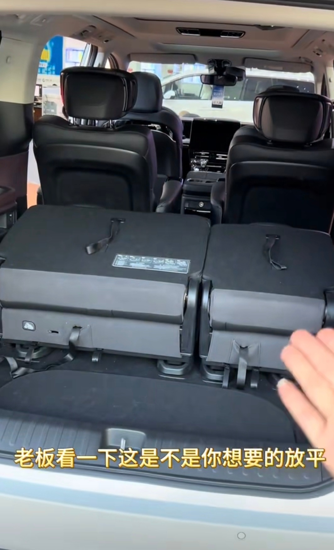 MPV的第三排座椅后躺放平(图一)和前折叠放平(图二),哪个更方便?后躺放平(图一),对于在车里睡觉可能更方便一些,但是对于临时拉点东西,尤其是大件东西还是不方便,因为很容易把座椅弄脏,或者把座椅刮破…高山8第三排座椅只能后躺放平(图一),不能前折叠放平(图二)昨晚去拉点东西,好一顿纠结,因为是一个异形的物品,还有一定高度,如果高山三排能前折叠放平,放下这个异型物品是很轻松的但是高山8只能后躺放平,平时车里也没放什么垫子,把东西直接放座椅,肯定弄脏且大概率会把座椅皮刮破昨晚好一顿折腾,还好高山大,把所有座椅都往前移,最后成功塞进去了…不过,总体来说,MPV的装载能力还是好于SUV的…