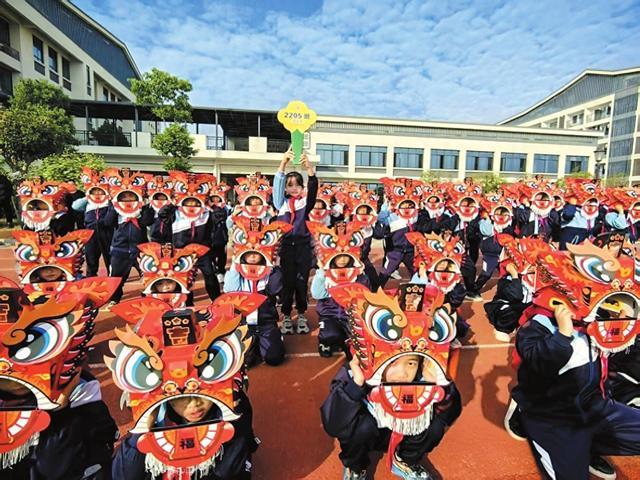 开幕式上,各年级主题方阵成为焦点,宛如一幅“平江风情画卷”。一年级“芙蓉萌娃寻味平江”,学生们手提自制平江花灯,点亮对家乡非遗的认知;二年级“巧手芙娃传习民俗”,学生们在舞蹈中融入舞龙舞狮元素,传承民间智慧;三年级“活力芙娃绘美家乡”,学生们用色彩和节奏描绘出家乡生态;四年级“阳光芙娃致敬匠心”,学生们在锣鼓声中致敬工匠精神;五、六年级“少年芙娃传承红色”,学生们以红旗和铿锵步伐铭记红色文化。