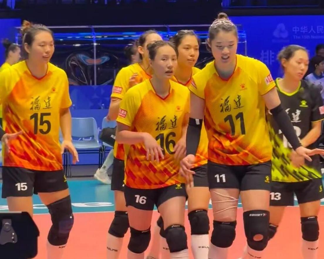 第十五届全运会女排成年组一场备受关注的1/4决赛,卫冕冠军天津女排以27-29、25-20、18-25、27-29不敌福建女排,无缘四强,庄宇珊在与李盈莹的对轰中胜出,全场豪取29分,李盈莹53扣18中2拦2发共拿到22分。福建女排上一次打进全运会四强还要追朔到1997年的上海全运会,那届最终获得第四名。至此,女排四强全部产生,半决赛将是江苏对阵福建,上海对阵山东。
