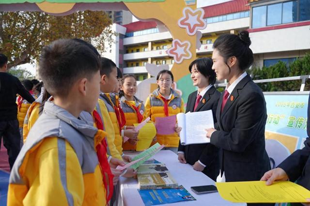 阳光讯(记者熊玺文/图)11月13日,由西安市委宣传部、西安市教育局主办,西安市雁塔区委宣传部、雁塔区教育局等单位承办的2025年西安市“绿书签行动”宣传示范活动在陕西师范大学附属小学举行。西安市雁塔法院审管办主任王丹、民二庭法官宋一林受邀参加,通过与在校学生现场互动的方式让法治课“活”起来,用专业力量为青少年健康成长筑牢防护屏障。