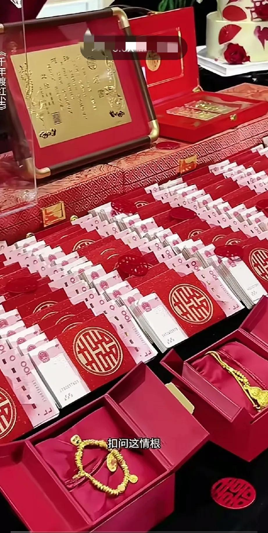 这样的婚姻是建立在金钱之上的。 这个新娘自理恐怕都困难。 家底肯定是非常雄厚的。 陪嫁少说也有上百万。 但愿新娘以后的日子会幸福美满。