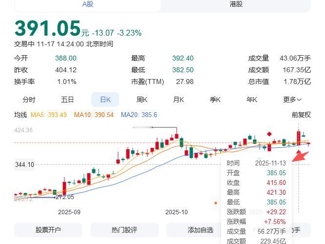 刚刚看到一个热搜:宁德时代蒸发近千亿。 我还以为是宁德时代发生了什么负面呢, 结果只是股票的波动~~~ 我就想知道,它从8月份的时候的270左右,涨到最高424, 哪怕是11月13日的时候,它也有421, 现在掉到了390,能叫蒸发?? 这不是正常的股市波动吗? 它又不是落落落落落…… 这种热搜标题看着真无语。
