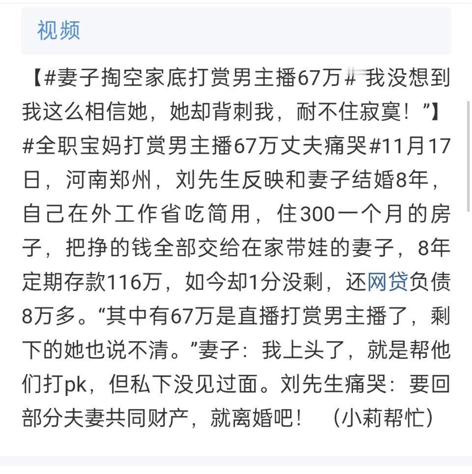 这是一个很经典的案例,丈夫在外面打工省吃俭用,并且上交工资给妻子,妻子把丈夫的116万挥霍一空,现在丈夫用什么办法拿回钱吗?不可能的,钱花了就是花了。丈夫上交工资后,钱就不是你的了,妻子用完以后,你也拿不回来了。没办法就是没办法,遇到了就是遇到了。