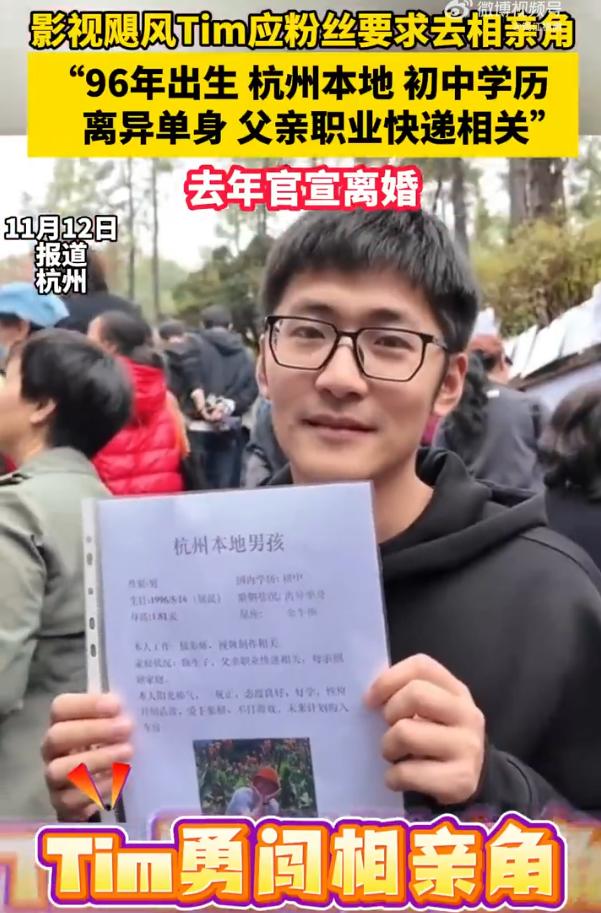 圆通总裁之子潘天鸿相亲居然因为学历被嫌弃了。 明明是身家不俗的“隐形富二代+创业大佬”,却在杭州相亲角栽在了“学历”上。 潘天鸿是圆通总裁的儿子,也是影视飓风的创始人,应粉丝要求在杭州万松书院相亲角“征婚”。 他专门弄了“低调版”的简历,上面写的他国内初中学历、离异单身、父亲从事快递相关工作。隐瞒了他的真实背景。 结果现场的阿姨吐槽“学历太低”“年轻就离异”。 这个事其实很现实,在传统相亲市场里,学历、婚史都是硬指标,他这次假相亲也是揭示了婚恋市场过度标签化、唯学历论的现实问题。