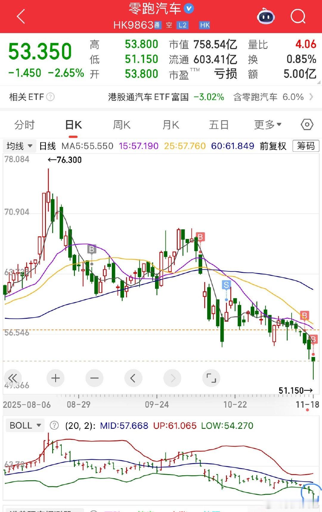 零跑股价,不晓得资本市场到底发生了什么,只知道这次的冲动买入是因为明显突破布林带下轨(得亏今天醒来就开始关注行情,捕捉到了这个坑)(前几日刚加仓,按照平常的节奏需要等跌到下一网再买,但是今天提前补了,判断逻辑只有一个:突破下轨太明显了,哪怕做t,也大概率赚的)