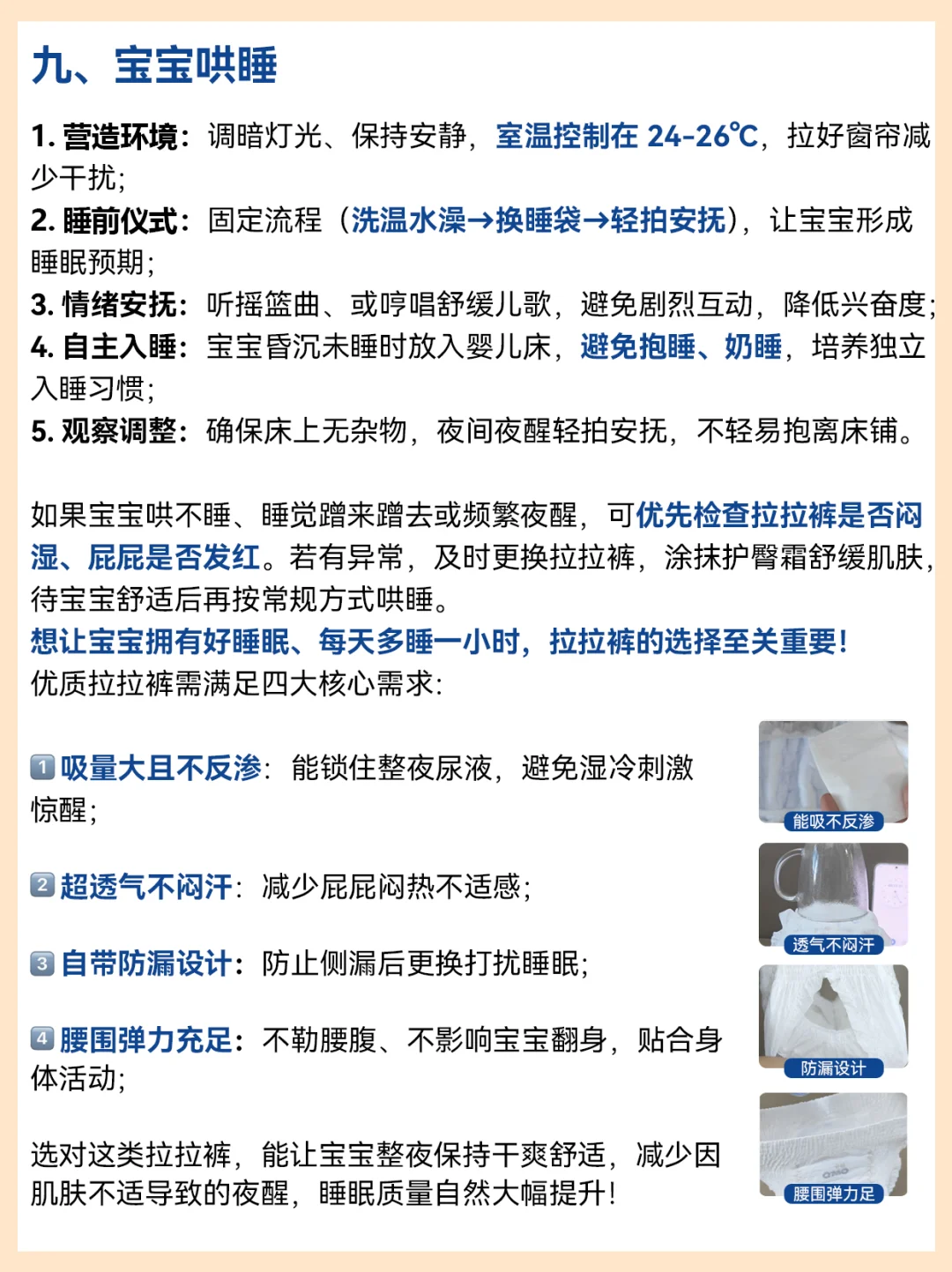 刚接手带娃,我直接被娃的小状况整懵了!还好有我家育儿嫂下户前塞的护理笔记,成了我的“带娃教科书”! . 今天把笔记分享出来,详细步骤看图1️⃣-4️⃣,希望帮到和我一样手忙脚乱的新手姐妹,少走弯路! . 👀这里面我感受超深的就是宝宝的屁屁护理了!有天晚上,娃怎么哄都不睡,哼唧得小脸通红,我抱晃半宿没用。😲突然想起育儿嫂的话:“哄不睡先扒尿裤!”一查果然屁屁潮乎乎的,都有点泛红了。按笔记说的换成了更干爽透气且能吸的拉拉裤,再薄涂护臀霜,半小时后娃不闹了,很快安稳睡着~ . 从这开始我就特别注意宝宝拉拉裤的选择了,选不对果然孩子和爸妈都遭罪❗ 我家现在回购多的是这个✨奇莫皇家至柔拉拉裤,很符合我对宝宝裤裤的需求~ . ✅它超能吸不反渗:一片一夜没问题,宝宝尿十次都能兜住,里面的三条导流槽加上魔力吸水珠,宝宝刚尿完就瞬吸锁牢,我试过早上起来摸表面还是干爽的,近乎0反渗。 . ✅它超透气更干爽:再加上满满的面层呼吸孔,不仅散热快,连下渗速度都特别快,减少尿液跟屁屁的接触时间,这阵子娃的屁屁状态稳定多了,直接给红屁屁说拜拜咯! . ✅更省心的是不漏尿!两侧防漏护围比普通款加高了13%,晚上给娃穿一片,不管他怎么翻身,从来没漏过尿,我俩终于都能睡个整觉了! . 还不会选拉拉裤的爸妈们,还不知道宝宝怎么带的爸妈们,这篇真的要收藏!看完少走好多弯路!