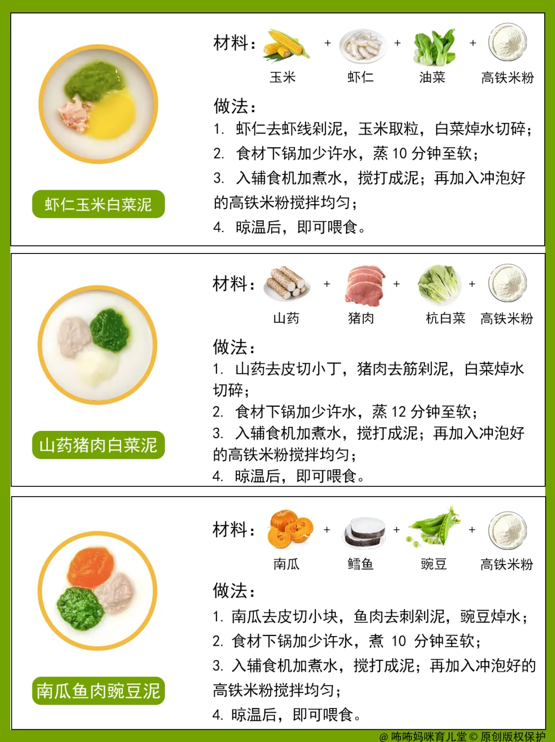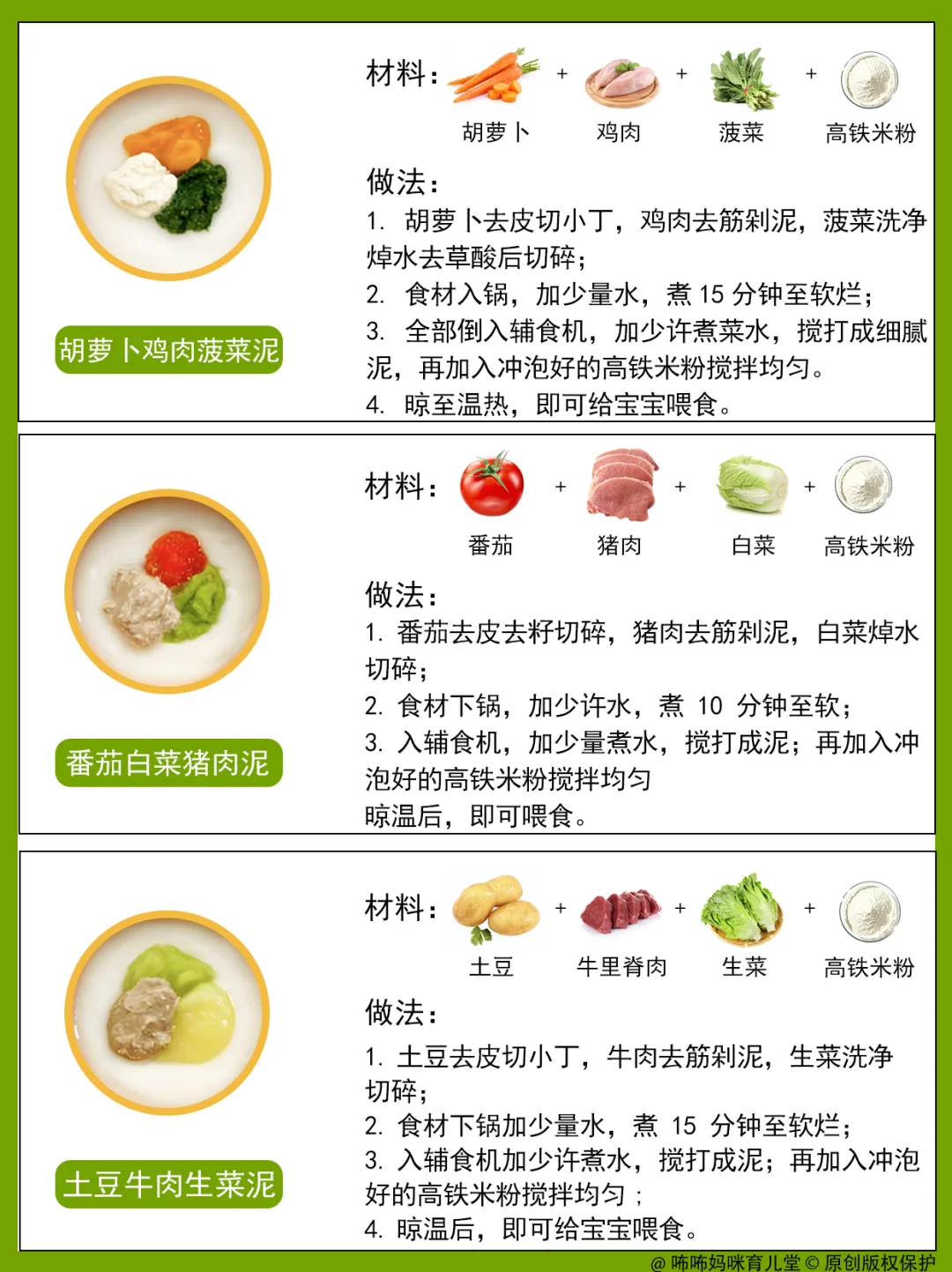 宝宝6月龄辅食营养搭配食谱及做法,请看图1️⃣-3️⃣;