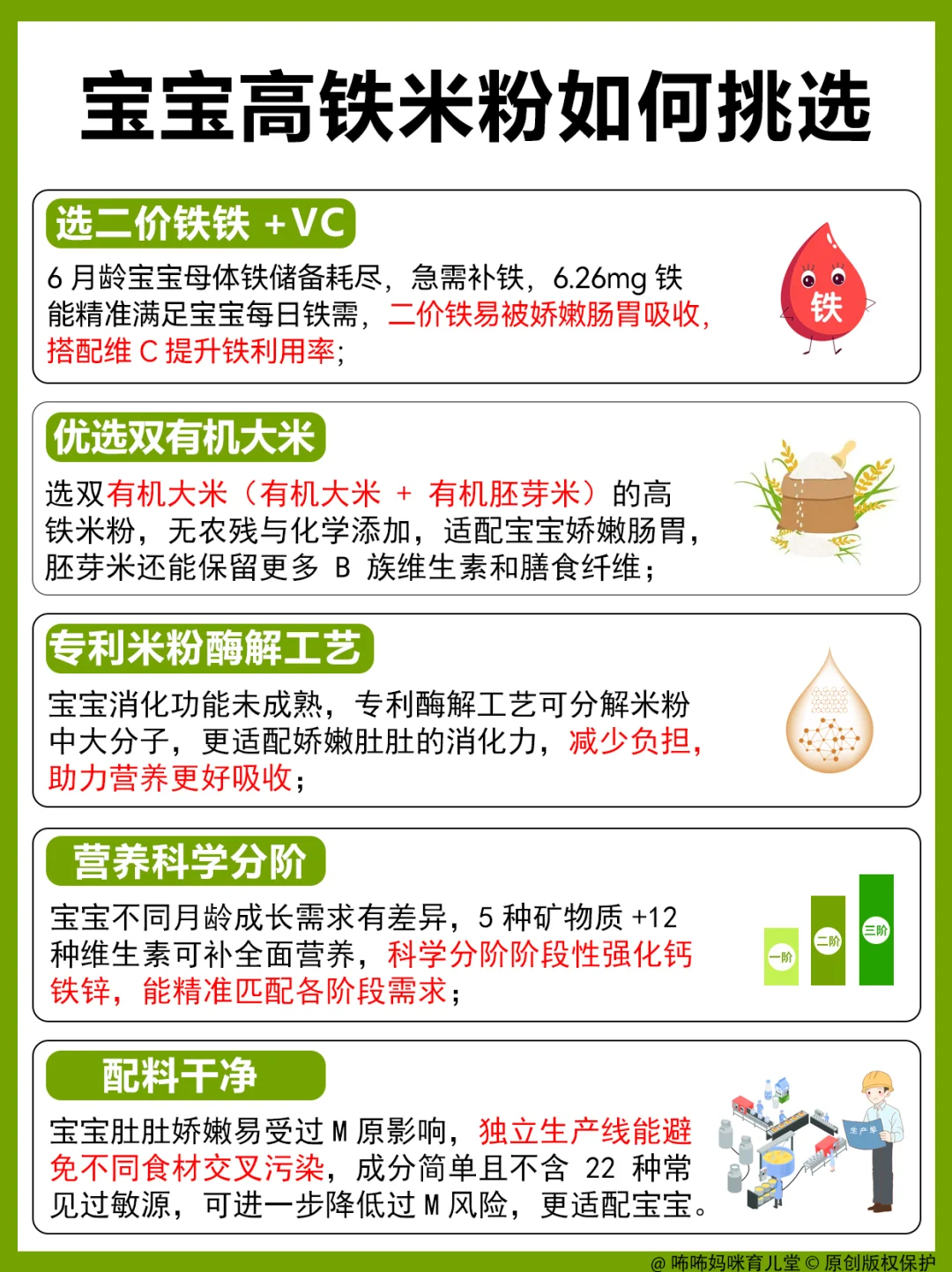 🟢而高铁米粉就是优解:铁含量都是标好的,不用担心补多补少;质地细腻,刚学吞咽的宝宝也能顺利接受!而且口感清淡,宝宝接受度高!