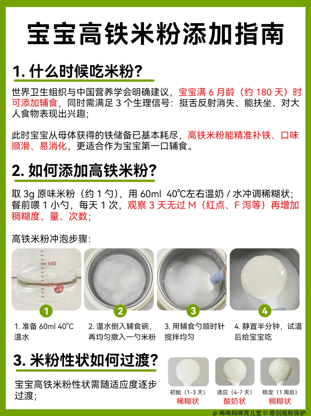 宝宝第一口米粉添加攻略、冲泡方法、性状过渡,请看图1️⃣;