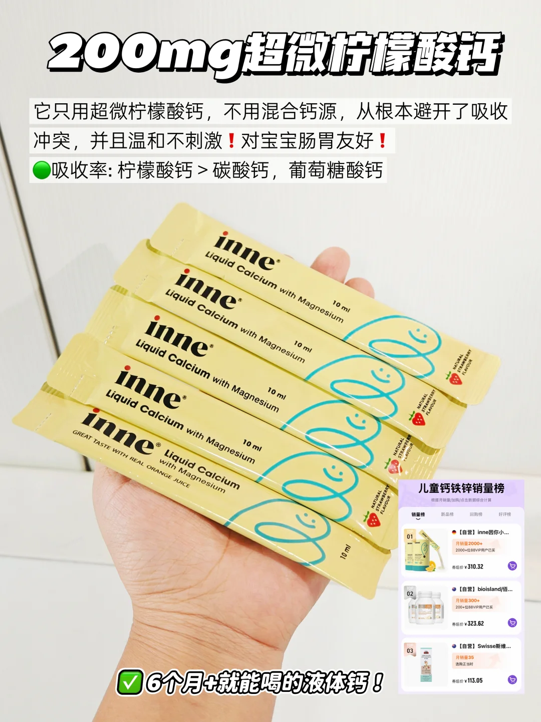 ❤️更贴心的是,它把超微柠檬酸钙、镁、锌、D3、K2 这 5 种对宝宝成长超关键的营养都聚齐了,五重成分科学配比,吸收效果更好!