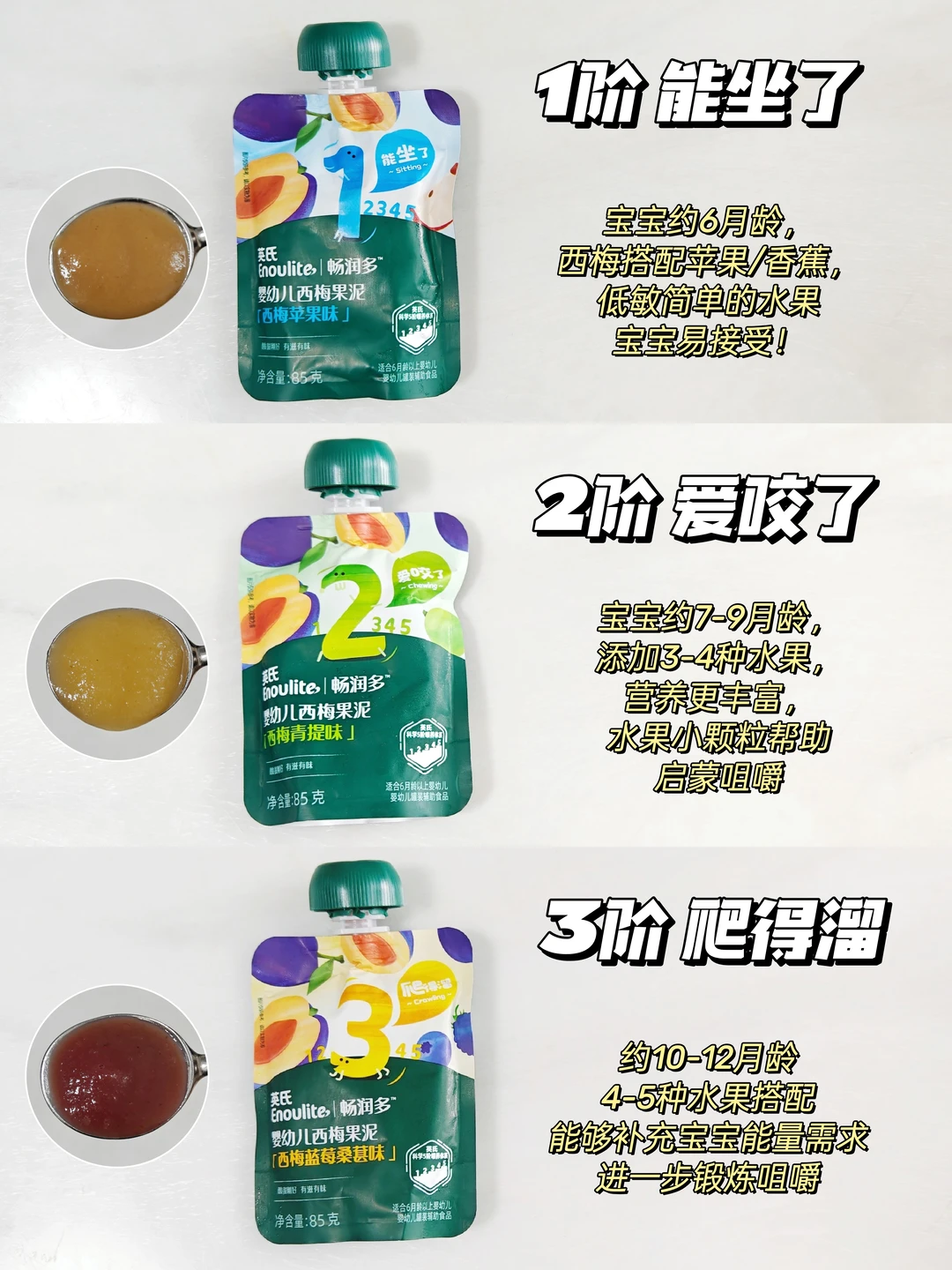 新手爸妈直接跟着数字选,吃完1阶吃2阶,吃完2阶吃3阶,轻松又科学👏